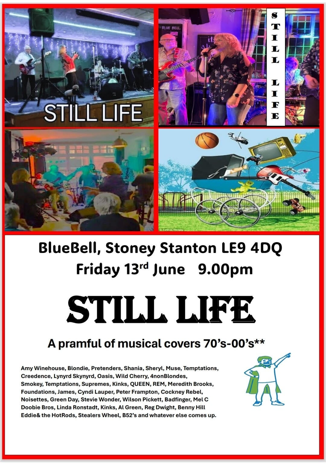 STILL LIFE ,COVER BAND , PLAYED AT THE CONNY CLUB , THURMASTON, LEICESTER ,UK ON SATURDAY SEPTEMBER 28TH, FROM THE START, THEY ENTERTAINED THE AUDIENCE WITH GREAT HARMONIES FROM THE FEMALE SINGERS,WHO DANCED THE NIGHT AWAY, DELIVERING GREAT SONG'S FROM THE 70s - 00 s.